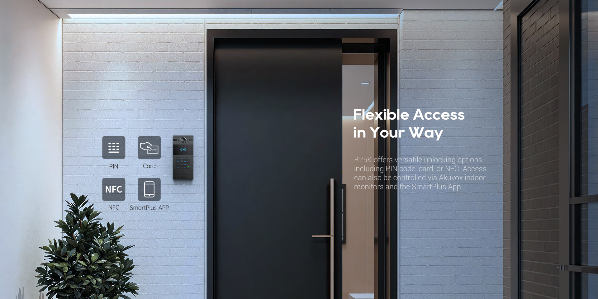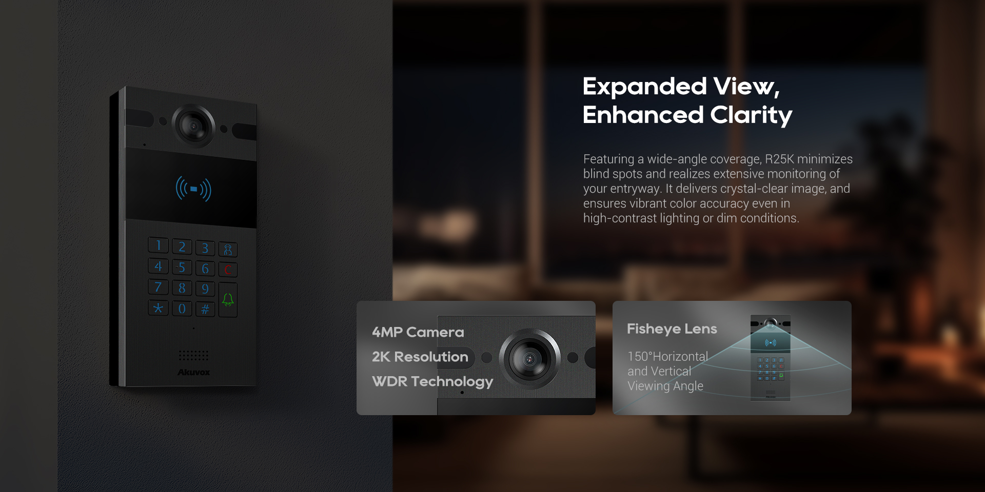 Featuring a high-resolution camera with WDR, an ultra wide-angle coverage, IP65-rated protection, as well as multiple access methods, R25K door phone delivers a secure, flexible, and stylish door entry experience.